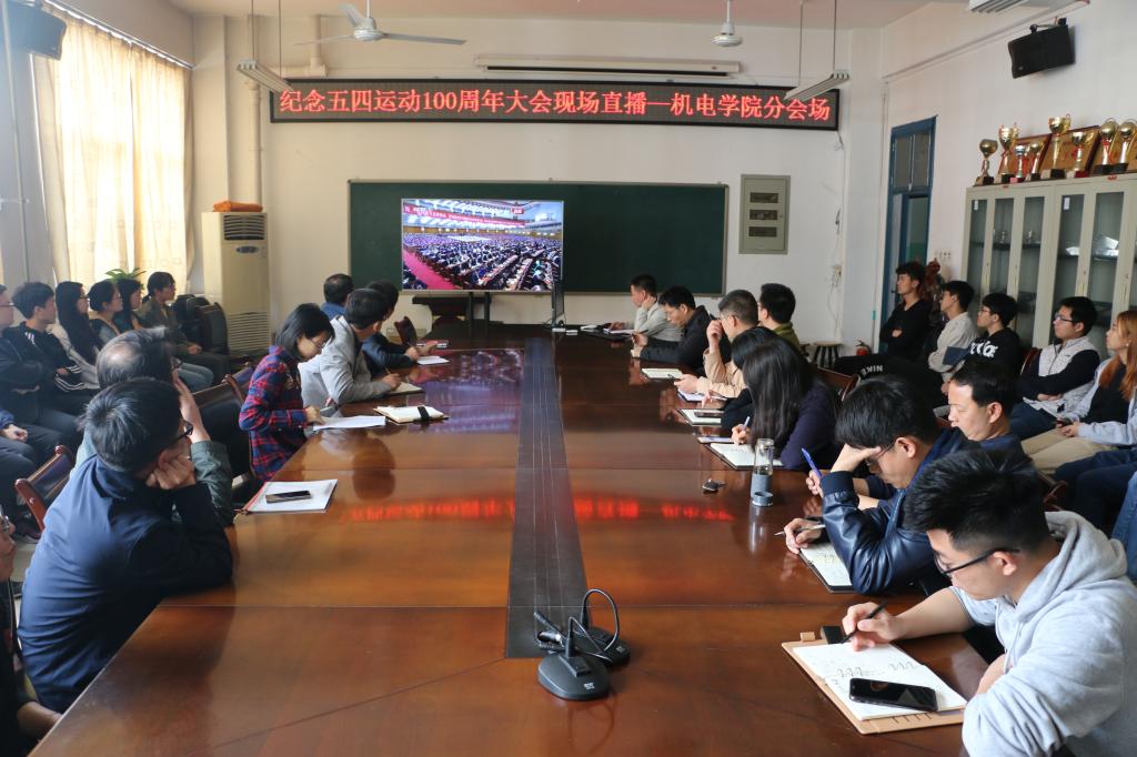 机电学院高度重视,在第一时间进行了专门部署,积极组织没有教学任务的20余名教职工和青年学生代表于4304会议室集中收听收看了大会直播盛况。在集中观看的同时,全院未能到场的师生也都自发地在办公室、学生宿舍等地通过多种形式对大会进行了收听收看。