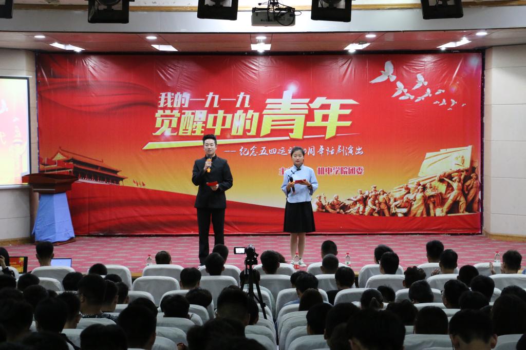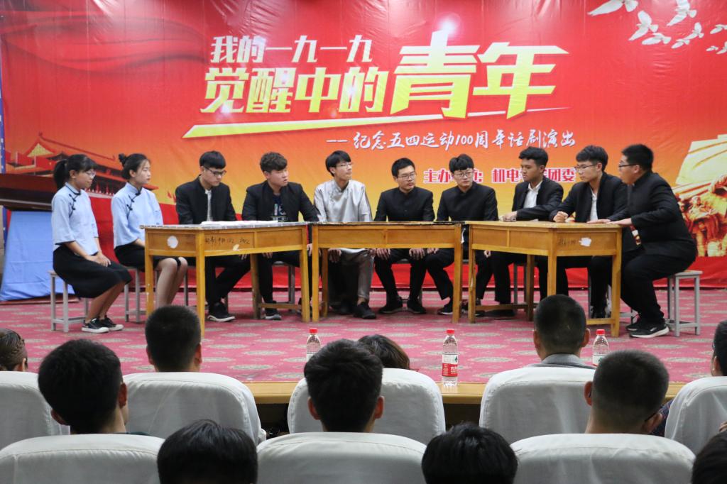 本次话剧表演是机电学院纪念“五四运动100周年”系列活动之一,活动的主题是“青春心向党,建功新时代”。演出回顾了五四爱国运动历程,让青年学生对“爱国、进步、民主、科学”的五四精神有了更加深刻的理解,激励青年学生将革命先辈们的爱国精神融入到今后的学习、工作和生活中,自觉成为能堪当民族复兴大任的时代新人。