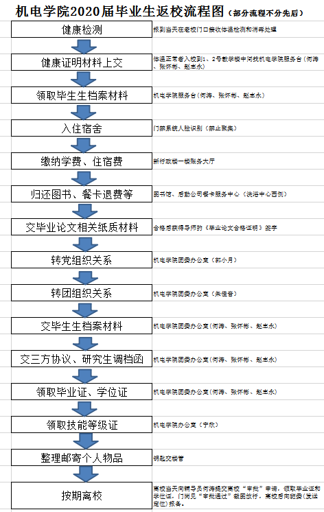 根据学校安排,6月1日至12日为2020届毕业生返校复学暨毕业离校工作时间。为做好毕业生返校离校工作,机电学院坚决贯彻落实学校工作部署,按照《河南科技学院第三批学生返校复学暨毕业离校工作安排方案》精神,研究制定《机电学院2020届毕业生返校复学暨毕业离校工作方案》,严格落实学校疫情防控工作要求,为毕业生返校和离校保驾护航!