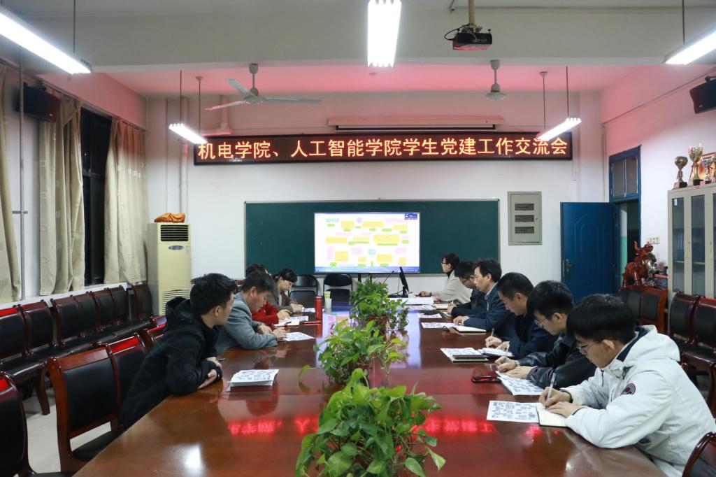 11月17日下午,机电学院、人工智能学院在机电学院4304会议室开展学生党建工作交流会,学校党校办公室主任叶晖应邀参加了会议。人工智能学院党总支书记吴玲玲、机电学院党委副书记李印、机电学院团委书记何涛、人工智能学院团委书记郭小月以及机电学院全体学生党支部书记参加了会议。会议由机电学院党委书记樊跃峰主持。