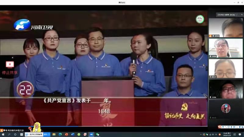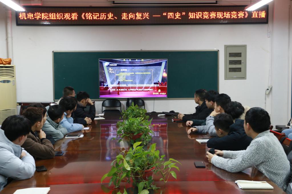12月9日晚,机电学院组织党员以不同形式收看《铭记历史、走向复兴——“四史”知识竞赛现场竞赛》直播。