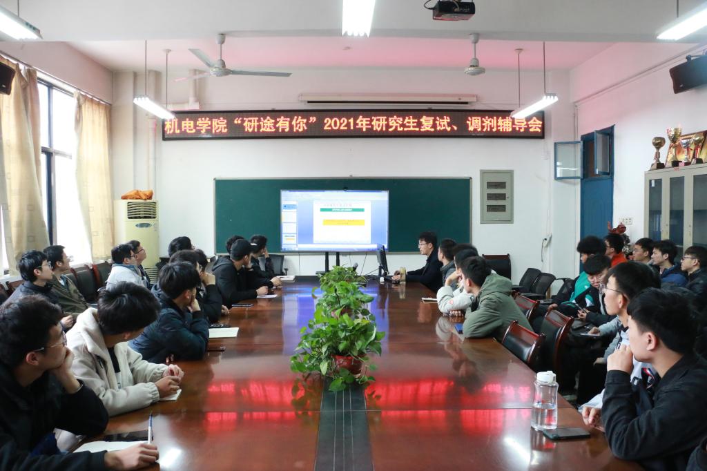 为了让我院考研学子更好地了解复试技巧和调剂动态,掌握调剂方法,3月19日下午,我院在4304会议室举办了2021年研究生复试、调剂辅导会。机电学院副院长李勇峰应邀参加会议,本次会议由张怀彬老师主持。
