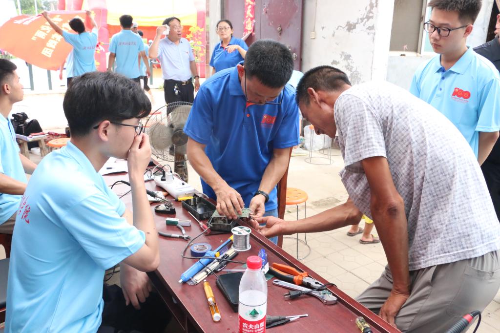 活动开展过程当中,队员们在酷热的天气下积极的给村民进行家电维修、挨家挨户的登门宣讲资助政策,耐心而又全面的解说,得到了村民们的认可和赞许。