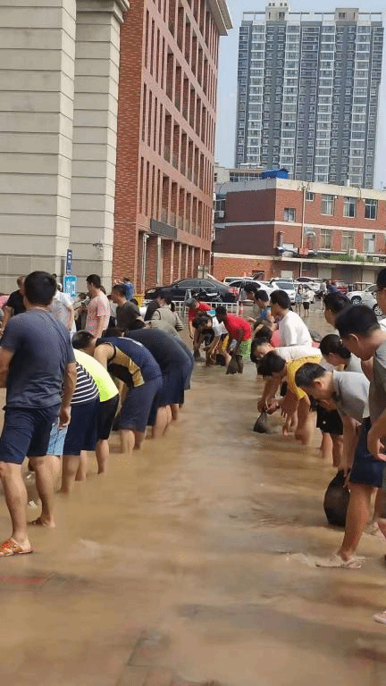 接到学校志愿者征集通知后,30分钟内十几名师生来到学校抗洪一线