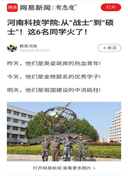 【网易新闻】《从“战士”到“硕士”!河南科技学院机电学院6名退伍大学生全部考研成功》