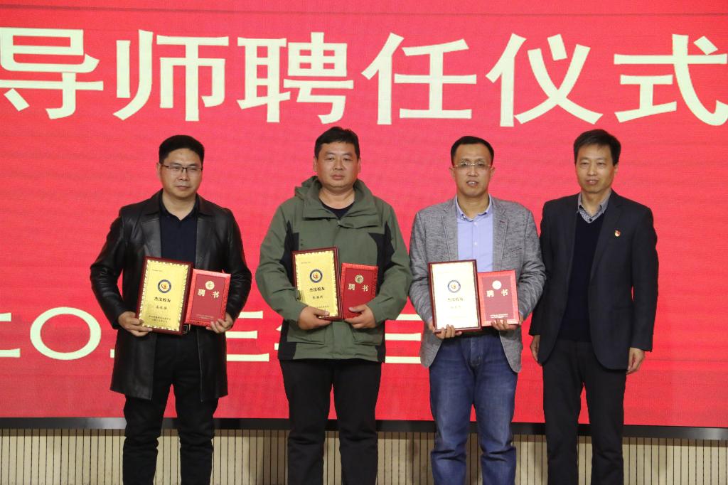会议伊始,李印宣读《机电学院关于聘任张海洲等三位优秀校友为智能制造“双创”首席导师的决定》。院党委书记樊跃峰为张海洲、高俊强、赵其光颁发了聘书。