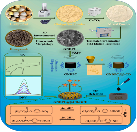 近日,我院赵红远博士研究组与河南农业大学、美国宾夕法尼亚州立大学等单位合作,在国际顶级学术期刊Sensors and Actuators B: Chemical(中科院一区Top期刊,IF=9.211)发表高水平学术论文“3D interconnected honeycomb-like ginkgo nut-derived porous carbon decorated with β-cyclodextrin for ultrasensitive detection of methyl parathion”(10.1016/j.snb.2023.133309)。该期刊是传感器领域的国际顶级学术期刊,在电化学和仪器仪表领域具有很高的学术影响力。