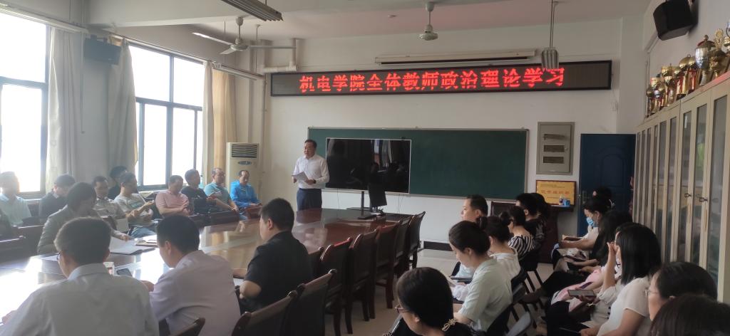 6月1日下午,机电学院在4304会议室召开全体教师政治理论学习专题会议,全体教师参加会议,会议由院党委书记张雅凌主持。