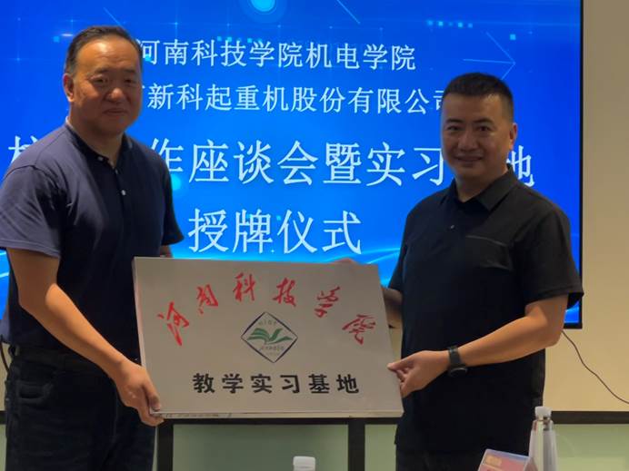 为探索企业发展动态,进一步拓展机电学院学生实习、就业途径,增进与企业的互动交流,深化校企产学研合作,机电学院积极筹措,开展走访企业,拓展实习、就业岗位活动。8月5日,机电学院院长聂福全一行四人,实地考察走访了长垣市新科起重、索顿新材料有限公司、东起集团、圣起集团等行业知名企业并进行了产学研合作座谈,同时与新科起重和索顿新材料有限公司举行了实习基地授牌仪式,长垣市副市长杨光,长垣市科工信局副局长付强兵参加了座谈。