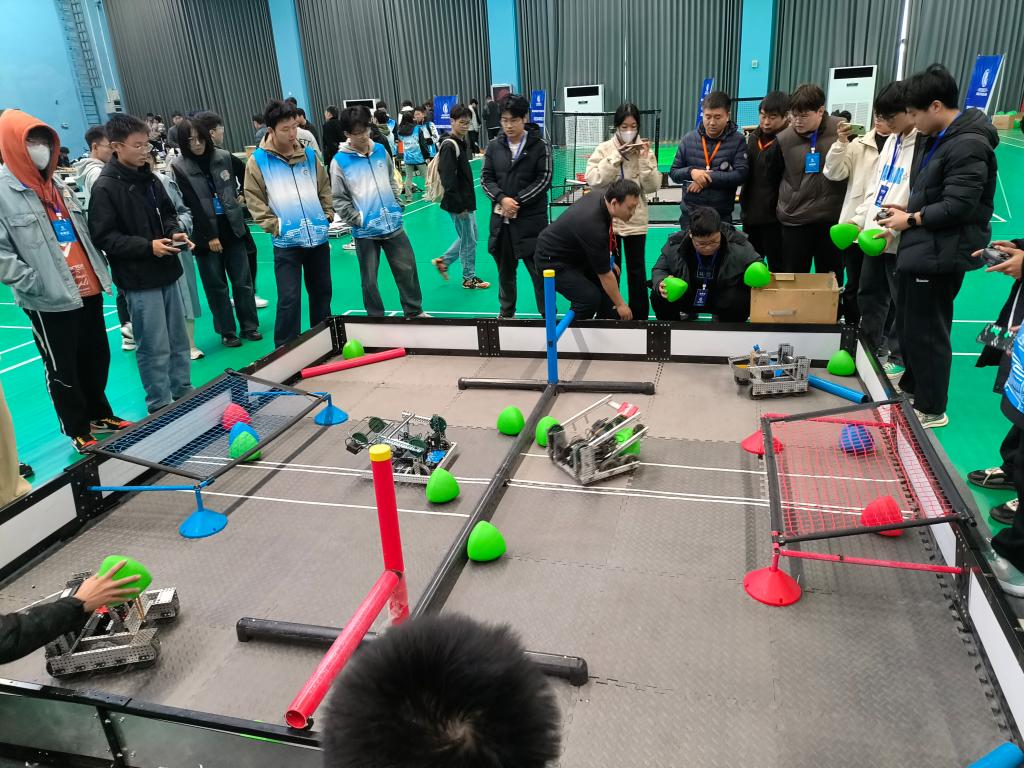 赛队在杨辉老师、付成果老师、徐君鹏老师的指导下,成员分工合理,认真备战,结合所学知识和过往比赛经验,不断对机器人进行机械结构和程序优化,在本次比赛中大放异彩,展现了务实且创新的风采。在一天的激烈角逐中,参赛选手们专注投入,用高超的技术和娴熟的操作赢得阵阵喝彩,充分展现了新时代学生的创新能力和实践水平。