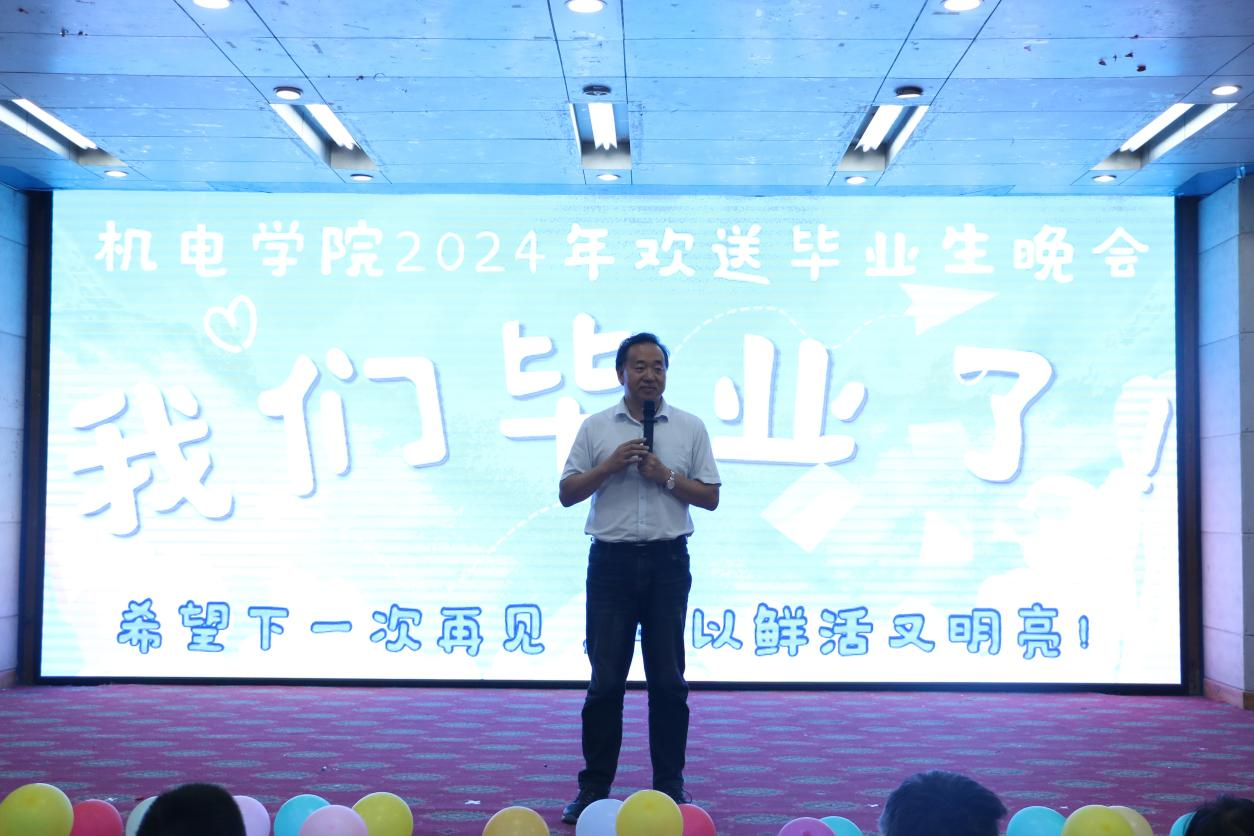 最后,聂福全作总结讲话,他对此次晚会的成功举办给予高度评价,对所有毕业生,送上了真诚的祝福,希望同学们不忘“顽强拼搏 自强不息”的机电精神,在工作中勤奋、求真、务实,勇做时代前进发展的顽强拼搏者和积极贡献者。