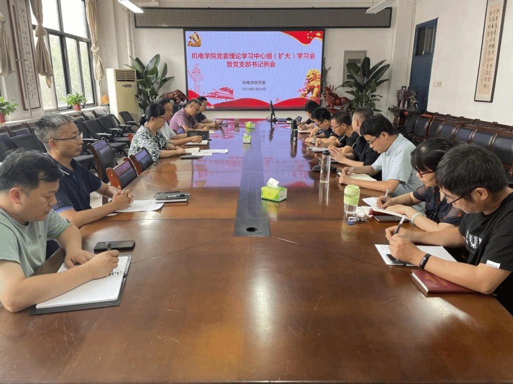 6月18日下午,机电学院在4304会议室召开党委理论学习中心组(扩大)学习会暨党支部书记例会。学院领导班子成员、党委委员、党支部书记及科级干部参加会议。会议由学院党委书记张雅凌主持。