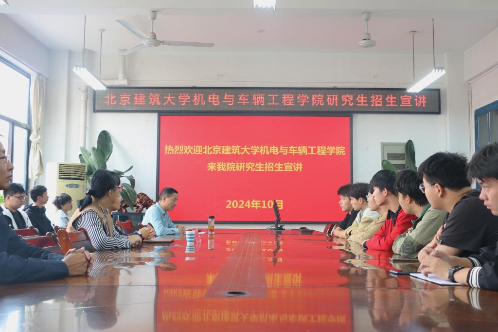 为加强学院跨学校合作交流,提升对研究生招生政策的认识,10月12日-16日,学院开展了研究生招生宣讲会,北京建筑大学机电与车辆工程学院、安徽科技学院机械工程学院先后到学院进行了宣讲。