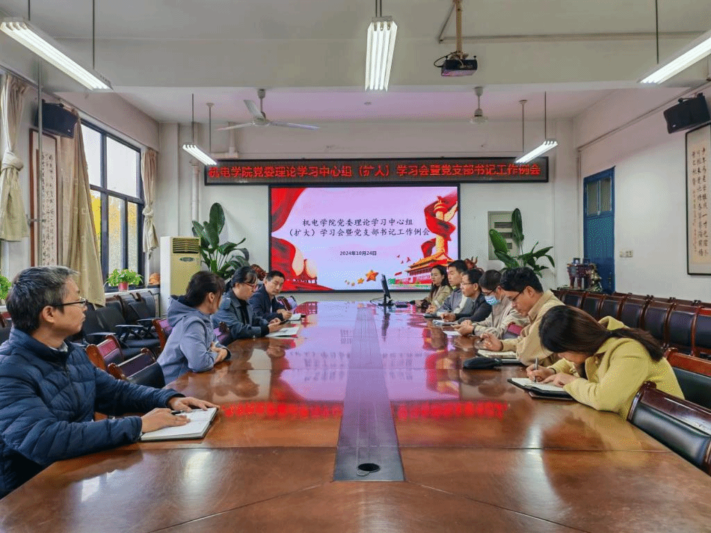 10月24日下午,机电学院在4304会议室召开党委理论学习中心组(扩大)学习会暨党支部书记工作例会。会议由学院党委书记张雅凌主持。