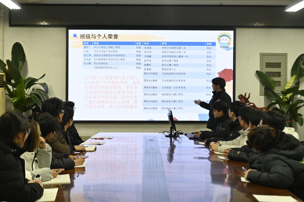 会议伊始,各班团支书根据抽签顺序依次进行述职汇报,依托PPT演示、视频播放和口头报告的形式,分别从团支部基本情况、团组织建设、团员教育评议、团费收缴、志愿服务、社会实践、“我为同学做实事”项目成果和特色活动等方面展开。汇报充分展现了各支部团员积极向上、团结奋进的精神风貌,赢得了同学们的阵阵掌声,现场气氛热烈。最终通过激烈角逐,电气241团支部、电气243团支部、电气244团支部、机制243团支部、智造242团支部被评为“优秀团支部”。