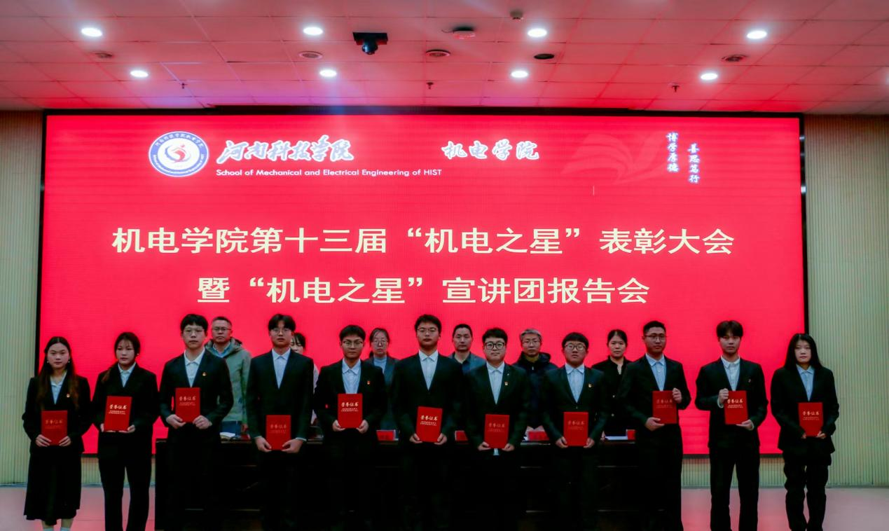 会上,副院长宁欣宣读了《关于表彰机电学院第十三届“机电之星”的决定》,与会领导为荣获第十三届“机电之星”的同学们颁发荣誉证书并合影留念。