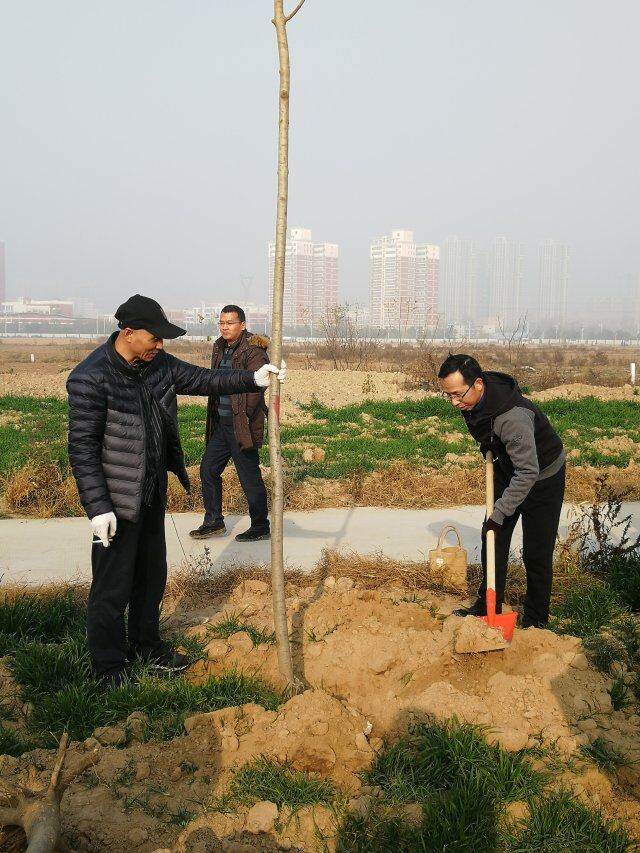 在植树现场,大家热情高涨、干劲十足,大家一起挥锹劳作,培土、筑埂、栽植,每道工序都认真进行,相互配合,按照学校统一规划,在所属区域圆满完成了80棵苗木的植树任务。