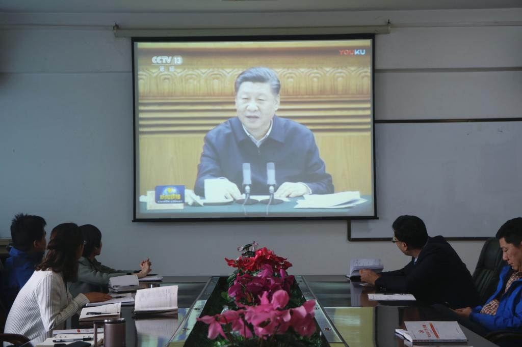 与会人员共同收看了习近平总书记主持召开的学校思想政治理论课教师座谈会视频新闻。学院党委副书记刘克平结合自身学习和工作体会,从14个要点对习近平总书记在学校思想政治理论课教师座谈会上的重要讲话精神进行了解读。