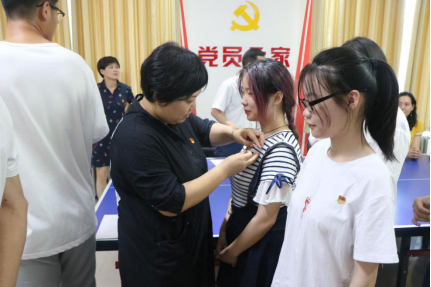 刘克平宣读参加宣誓的新党员名单后,与会领导老师为新党员发放并佩戴党徽。随后,全体党员面对党旗庄严宣誓,再一次坚定了“不忘初心、牢记使命”的信心与决心,进一步强化了理想信念与责任担当。作为新党员代表的王绍光,回顾了自己的入党经历并表明今后将时刻以党的先进性、积极性严格要求自我,努力成为一名合格的党员。