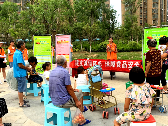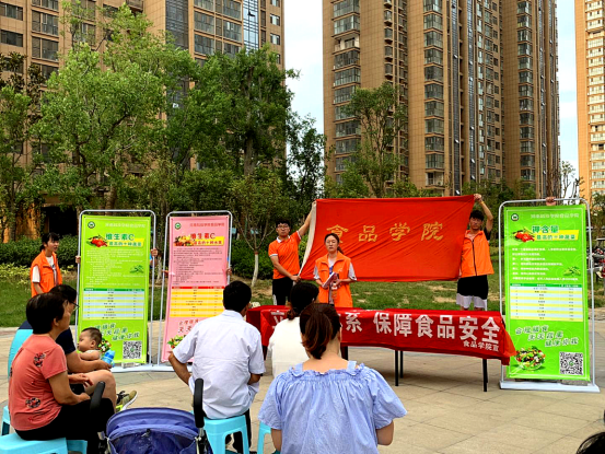 在乔谢社区,实践团通过社区广播、悬挂条幅展板、发放宣传资料、填写问卷调查等多种形式,从专业角度对食品安全知识进行社会调查与理论宣讲,增强了广大居民的食品安全自我保护意识,杜绝了食源性疾病的发生,有效避免了不安全食品所造成的危害,维护其合法权益。