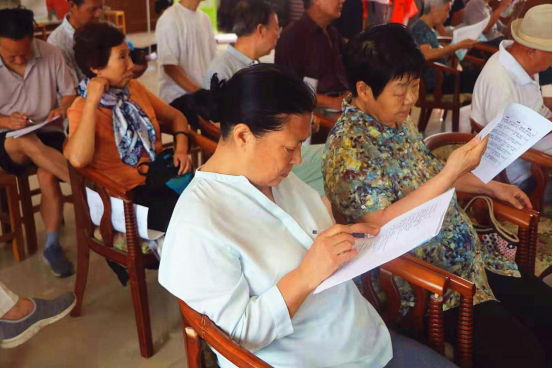 实践队员从老年人普遍存在的饮食问题及传统养生认知为切入点,印制相关的“食·研”调查问卷,对老年人关于养生的了解情况初步进行调查统计。随后,以“再见,民间养生学”为课题,从餐桌揭秘、模拟厨房、打破谣言三大板块,对老年人食品安全的意义、生活中常见的养生误区以及如何正确进行饮食搭配等内容做了专题宣讲,并针对老人们提出的相关问题,耐心地一一给予了解答和建议。大家纷纷表示感谢我院学生在养生方面给与的正确指导和关心帮助。