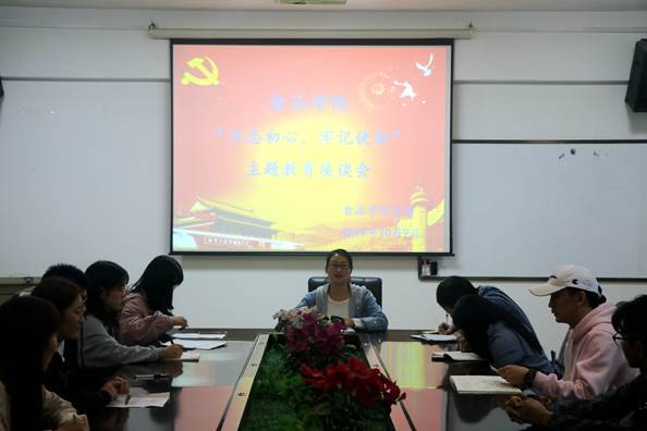 为扎实开展“不忘初心、牢记使命”主题教育,确保取得实实在在实效,10月9日下午,食品学院在304会议室召开了“不忘初心、牢记使命”主题教育座谈会,针对“学生党支部建设、学生党员发展”等方面进行专题调研。食品学院党建组织员吴丹,团委书记、学生党支部第一支部书记杨胜利,学生第二党支部书记郭婧媛,学生第三党支部书记项丰娟以及学生党员和普通学生代表共50余人出席了本次座谈会。会议由郭婧媛主持。