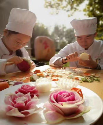 校庆期间,为做好接站工作,教工党员志愿者提前与各位校友取得联系,并开私家车去车站迎送校友。在校园内,学生志愿者进行了两天的食雕和茶艺现场展示活动,他们精湛的技艺和优雅的表演,受到校友和师生的赞誉,其中学生进行食雕的照片被《光明日报》《农民日报》等媒体所采用。在庆祝大会现场,志愿者引导嘉宾、学生有序落座,整场活动秩序井然,入党积极分子刘志远教师指导学生创作的主题食雕作品在校庆文艺表演中进行了节目展示。在“服务乡村振兴高峰论坛”中,我院党员志愿者为会议的顺利召开提供了茶歇食品,展示了精美的食雕作品。在后勤服务中心组织的“重温母校味道”服务队里,我院学生发挥专业特长参与校庆自助餐制备、菜品摆台、秩序维护、校友引导等工作,得体到位的服务,受到了校友的一致好评。