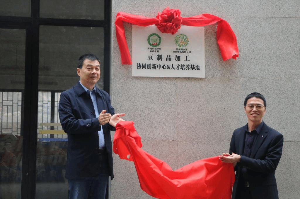 10月27日上午,由食品学院与郑州新农源绿色食品有限公司联合设立的“豆制品加工协同创新中心&人才培养基地”揭牌仪式在食品学院办公楼下隆重举行。食品学院党委书记李波、副院长郭延成、郑州新农源绿色食品有限公司董事长李胜利、人力资源部经理张春林、品牌事业部经理王亚飞、食品学院教师学生代表共同见证了此次揭牌仪式,仪式由食品学院科研秘书冉军舰主持。