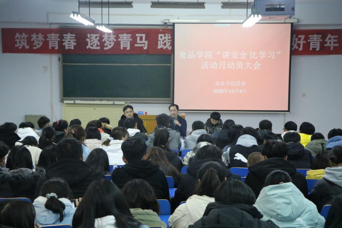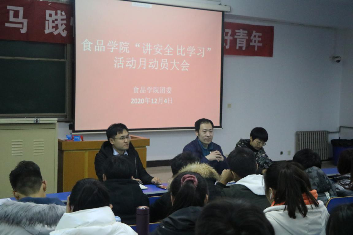 12月4日,食品学院在五合二教室召开“讲安全比学习”活动月动员大会。食品学院团委书记杨胜利,辅导员孙一帆、赵振凯以及学生干部、宿舍长参加此次会议。