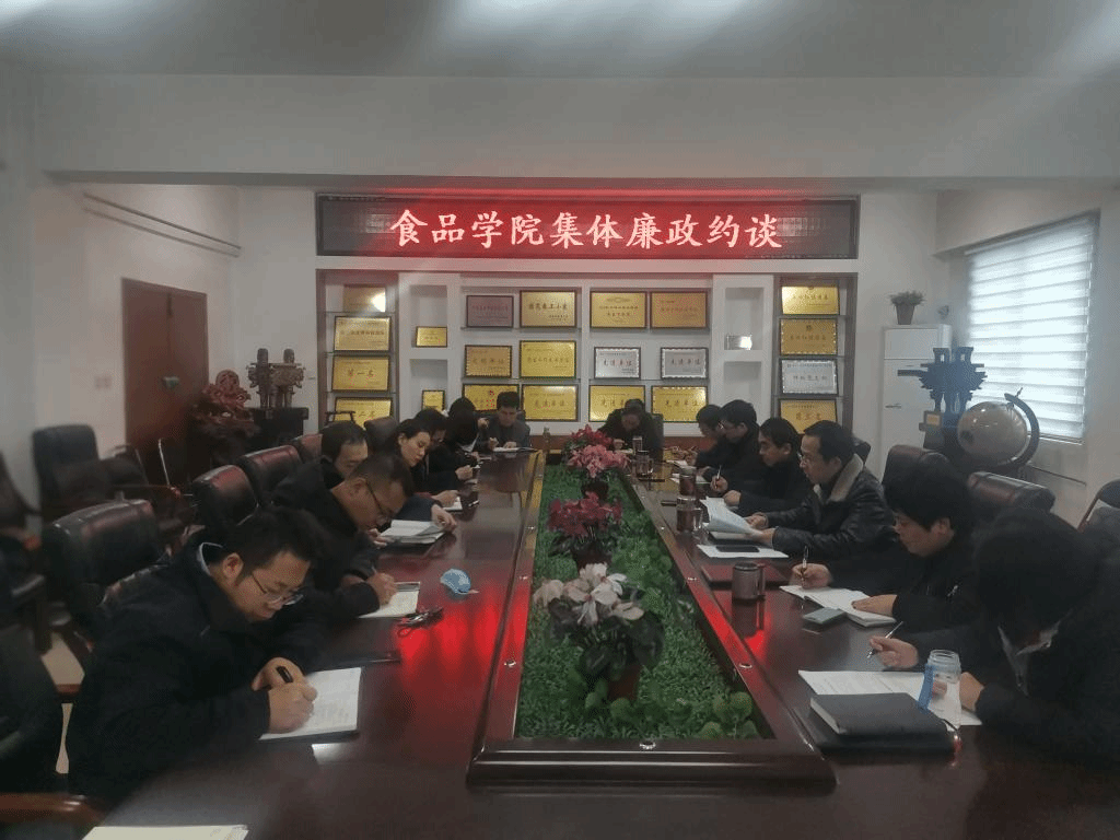 为深入学习贯彻党的十九届五中全会精神,一体推进不敢腐、不能腐、不想腐机制建设,推动全面从严治党向纵深发展,进一步加强对党员干部的日常监督、管理和教育工作,12月10日下午,食品学院在学院三楼会议室进行集体廉政约谈,学院领导班子成员、党委委员、各党支部书记和重要岗位科级干部参加。