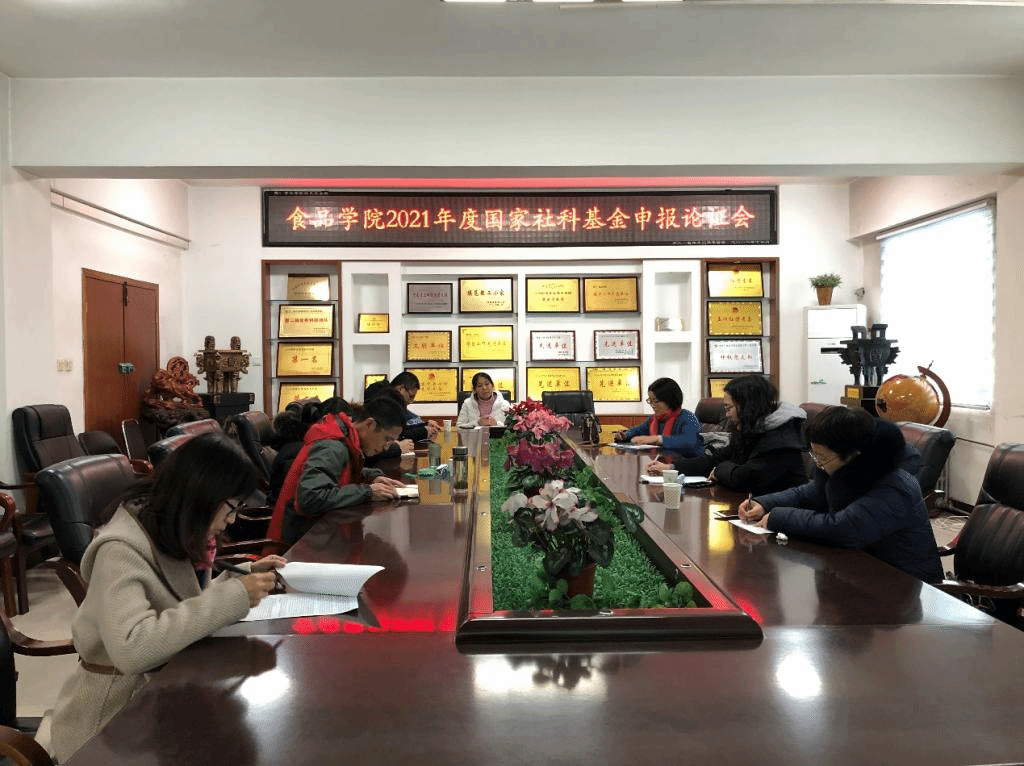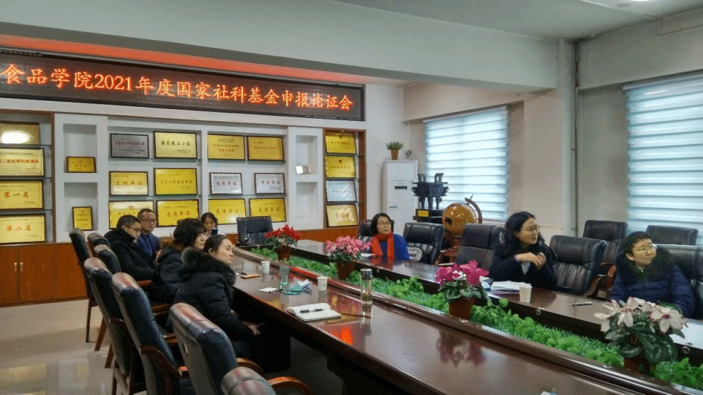 12月29日下午在食品学院办公楼三楼会议室进行了2021年度国家社科基金项目申报论证会。教育科学学院宋飞琼教授、科技处毕昱文副处长对食品学院国家社科基金申报工作进行了细致入微的指导。会议由食品学院副院长郭延成主持。