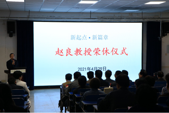 4月29日下午,食品学院赵良教授荣休仪式在五合一教室举行。食品学院联点领导、副校长冯启高,宣传部副部长方强,曾经在学院工作或学习过的老同事代表和学生代表,赵良教授的家人,以及食品学院全体教职工参加了仪式,仪式由学院党委书记李波主持。