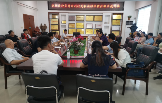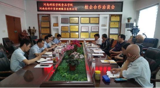5月29日,焦作市科技局党组书记、局长杜安禄率武陟县科工局、修武县科工局、博爱县科工局、河南尚科计量检测服务有限公司、武陟一村食品有限公司、大咖国际食品有限公司等10余家企事业单位主要负责人来我校洽谈产业科技对接.食品学院党委书记李波教授、院长李光磊教授、副院长张令文副教授、梁新红教授、师玉忠副教授等与企业主要负责人在企业科技需求、产品开发及企业发展等方面进行了深入交流与洽谈,会议由食品学院副院长郭延成主持。