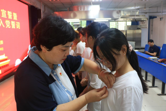 会上,院长李光磊宣读了新发展党员名单。李波、刘克平等老党员代表依次为新党员佩戴党徽,小小党徽为人民,一颗红心跟党走。随后李波带领全体党员庄严的举起右手、面向党旗激情饱满的宣誓,新党员入党宣誓,老党员重温入党誓词,既是对新加入党组织同志举行的一种光荣仪式,同时更是对老党员同志的一种警醒,80字的入党誓词,时刻都在提醒着我们每一个共产党员要不忘入党初心,牢记服务使命。
