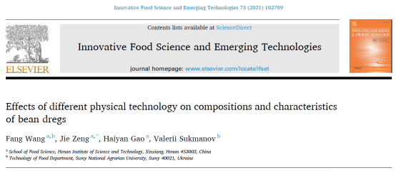 近日,食品学院粮油科学团队曾洁教授课题组,在中科院一区Top期刊《Innovative Food Science and Emerging Technologies》发表了题为“Effects of different physical technology on compositions and characteristics of bean dregs”“的研究论文,报道了不同物理技术对豆渣组成和特性研究方面取得新进展。河南科技学院为第一完成单位,中乌合作联合培养博士研究生王方为第一作者,曾洁教授为通讯作者。