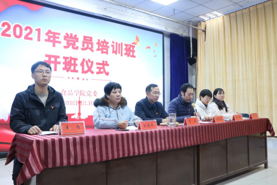 为深入学习贯彻习近平新时代中国特色社会主义思想和党的十九届六中全会精神,推进党史学习教育,进一步引导广大党员坚定理想信念,提升党性修养,主动发挥先锋模范作用,12月10日晚,食品学院于五合一教室举行2021年党员培训班开班仪式。学院党委书记李波,党委副书记刘克平,团委书记杨胜利,辅导员孙一帆、王行、陈宁以及73名学生党员参加开班仪式,开班仪式由杨胜利主持。