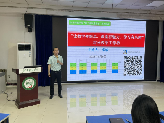 李波分析了我校开展对分教学改革的必要性和可行性,围绕《深化新时代教育评价总体方案》和《河南科技学院教师教学工作规范(修订)》有关要求,指出教学改革必须要做,“小修小补”解决不了课堂教学的根本问题,鼓励与会人员大胆尝试,勇于实践,锐意教改,通过对分教学等模式提升课堂教学质量,提高育人本领,落实立德树人根本任务,用实际行动贯彻落实党的教育方针。