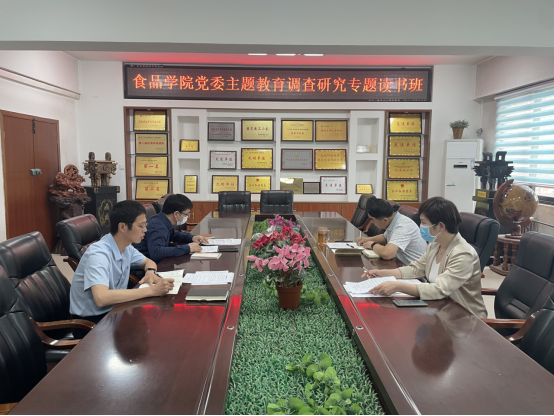 5月25日上午,食品学院在304会议室召开食品学院党委主题教育调查研究专题读书班。全体班子成员参加,会议由院党委书记陈腾主持。