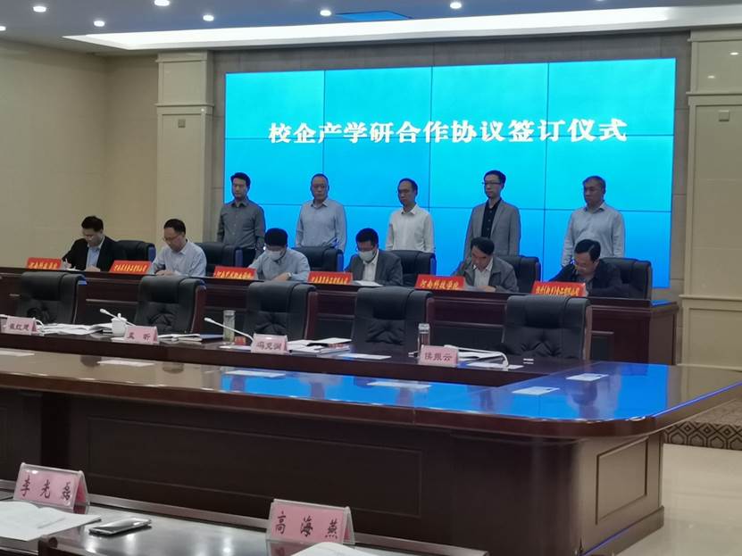 会上李光磊代表食品学院和恒升(新乡)食品有限公司董事长安振民签订了产学研合作协议,高海燕代表食品学院和河南英杰食品有限公司刘海波签订了产学研合作协议。