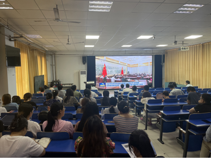 会上,大家集体学习了学校文件精神,并通过视频形式详细学习了习近平总书记在中共中央政治局第五次集体学习时的重要讲话内容。陈腾指出,习近平总书记的重要讲话,立足中华民族伟大复兴战略全局,深刻阐述了建设教育强国的重大战略意义,是引领全党全社会共同办好教育强国事业的思想旗帜,为建设中国特色社会主义教育强国提供了根本遵循和行动指南。
