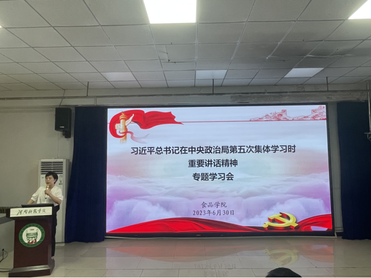6月30日上午,食品学院在五合一会议室召开学习“习近平总书记在中共中央政治局第五次集体学习时的重要讲话精神”专题会议。学院全体教工参加,会议由院党委书记陈腾主持。
