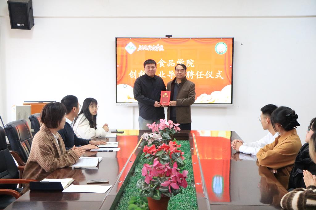 会上,李光磊为食创空间负责人陈慧祥颁发创新创业导师聘书。陈慧祥表示,被聘为创新创业导师既是一种荣誉,又是一种责任。他将结合自身专业所长及资源,积极为学院大学生创新创业工作提供有力帮助,共同助力学院提升双创工作水平。