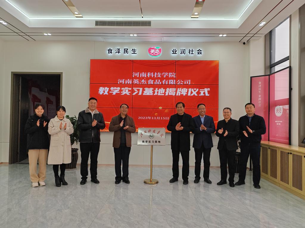 为提升高层次人才培养质量,拓宽毕业生就业渠道,进一步推动产学研一体化深度融合,11月15日上午,食品学院院长李光磊教授、河南省面制品改良工程技术研究中心主任曾洁教授、食品工程实训中心主任高海燕教授、河南省面制品改良工程技术研究中心秘书宋孟迪博士等一行5人,赴河南英杰食品有限公司进行了实习基地挂牌签约仪式。
