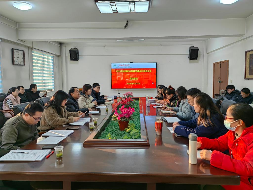 1月22日,食品学院在学院实训楼304会议室举行了2024年度国家自然科学基金申报专家论证会。刘本国、焦凌霞、杨伟、周威等4位国家自然科学基金网评专家担任论证专家。学院党委书记陈腾,院长李光磊,副院长张令文,所有申报基金教师参加了此次论证会。会议由张令文主持。