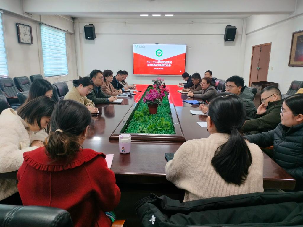 3月20日下午,食品学院在学院三楼会议室召开2023-2024学年实习总结及经验交流会,学院党委书记陈腾、副书记郭延成、副院长冉军舰、各专业负责人及各专业实习指导老师参加了此次会议,会议由冉军舰主持。