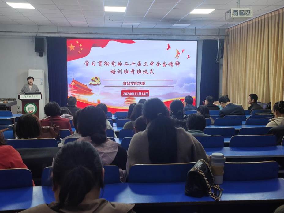 为进一步学习贯彻党的二十届三中全会精神,11月14日下午,食品学院在五合一举行学习贯彻党的二十届三中全会精神开班仪式,学院党政领导、科级干部、全体党员参与此次活动。