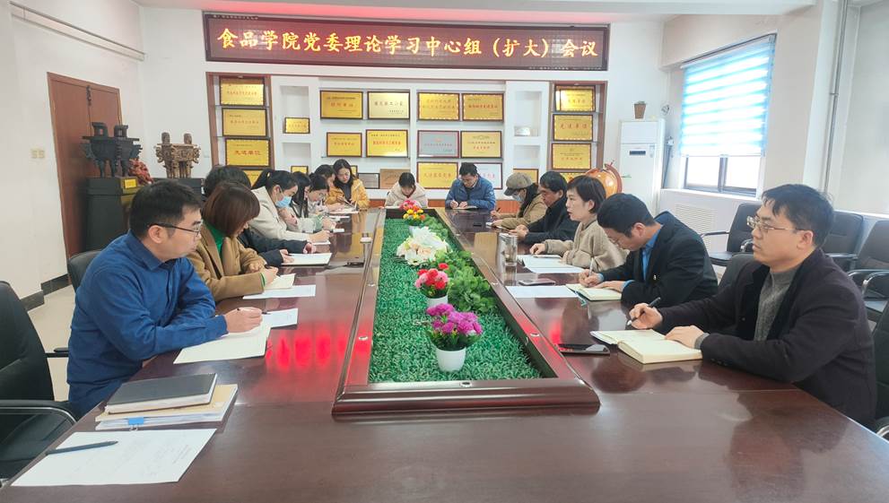 11月18日上午,食品学院党委在304会议室召开党委理论学习中心组(扩大)会议,学院党委委员及各支部书记参加了此次会议,会议由学院党委书记陈腾主持。