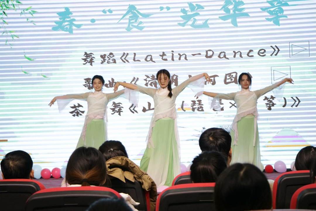晚会节目分为“春·食光华章”、“夏·青春悦动”、秋·华彩当下”、“冬·梦想篇章”四个篇章,节目形式多样,精彩纷呈。悠扬的歌声、动人的舞蹈、幽默的小品、精彩的相声表演等节目轮番上演,为观众们带来了一场视听盛宴。晚会在充满活力与希望的“春·食光华章”拉开帷幕。舞者们身着鲜绿的服装,如同春天破土而出的新芽,用灵动的舞姿展现了春季的生机。歌曲演唱精彩纷呈,歌手的歌声极具感染力,婉转悠扬,扣人心弦。随着舞台灯光的转换,“夏·青春悦动”以如火的热情席卷而来。充满激情的现代舞表演,舞者们用高难度的动作和强烈的节奏表达夏日的热情。富有诗意的配乐朗诵,朗诵者深情地讲述着青春的活力。“秋·华彩当下”犹如一幅丰收的画卷在舞台上徐徐展开。小品表演过程中,表演者们以风趣幽默的语言和生动的肢体动作,将日常学习中的趣闻轶事搬上舞台,台下师生不时爆发出阵阵笑声和掌声。晚会逐渐进入“冬·梦想篇章”环节,相声演员们诙谐幽默的表演让全场观众欢笑连连,紧接着的音乐表演又带来了温暖的感动。晚会氛围轻松快乐,不仅展现出学院浓厚的文化氛围,更让大家在欢笑中增进了对学院的热爱与归属感。