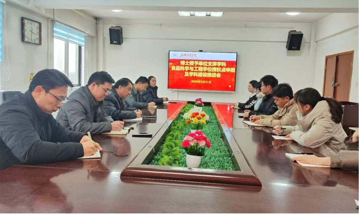 2月21日下午,食品科学与工程博士学位授权点申报工作推进会在食品学院办公楼304会议室召开。食品学院、人工智能学院、机电学院的学科带头人、骨干教师参加了本次会议。会议由食品学院负责人主持。