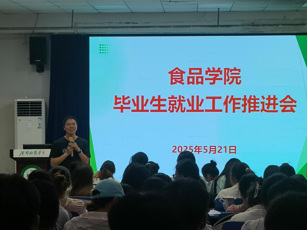 5月21日上午,食品学院2025届毕业生就业工作推进会在五合一召开。学院党委副书记郭延成、团委书记姜丽娟、正科级辅导员李晨辉及全体在校毕业生参加了会议。